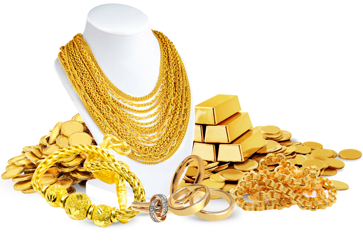รับซื้อทุกประเภท ทองรูปพรรณ (สร้อย, แหวน, กำไล), ทองคำแท่ง, เศษทอง, ทองเก่า, ทองชำรุด, ทองเคทุกเปอร์เซ็นต์ (9K, 14K, 18K) และโลหะมีค่าอื่นๆ (เงิน, แพลทินัม) ประเมินฟรี ไม่มีค่าใช้จ่ายในการตรวจสอบ