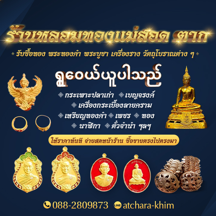 ขอเชิญชวนทุกท่านในจังหวัดตากและพื้นที่ใกล้เคียง (แม่สอด/แม่ระมาด/ท่าสองยาง) ที่ต้องการเปลี่ยนเครื่องประดับมีค่าให้เป็นเงินสด ด้วยราคาที่ยุติธรรมและสูงกว่ามาตรฐาน ด้วยความเข้าใจอย่างลึกซึ้งในฐานะ “เมืองศูนย์กลางการค้าอัญมณีชายแดน” เราจึงพร้อมให้ราคาประเมินที่อ้างอิงจากตลาดโลกและตลาดพลอยเมียวดีที่คึกคัก เพื่อให้ทรัพย์สินของท่านได้รับมูลค่าคืนสูงสุด
